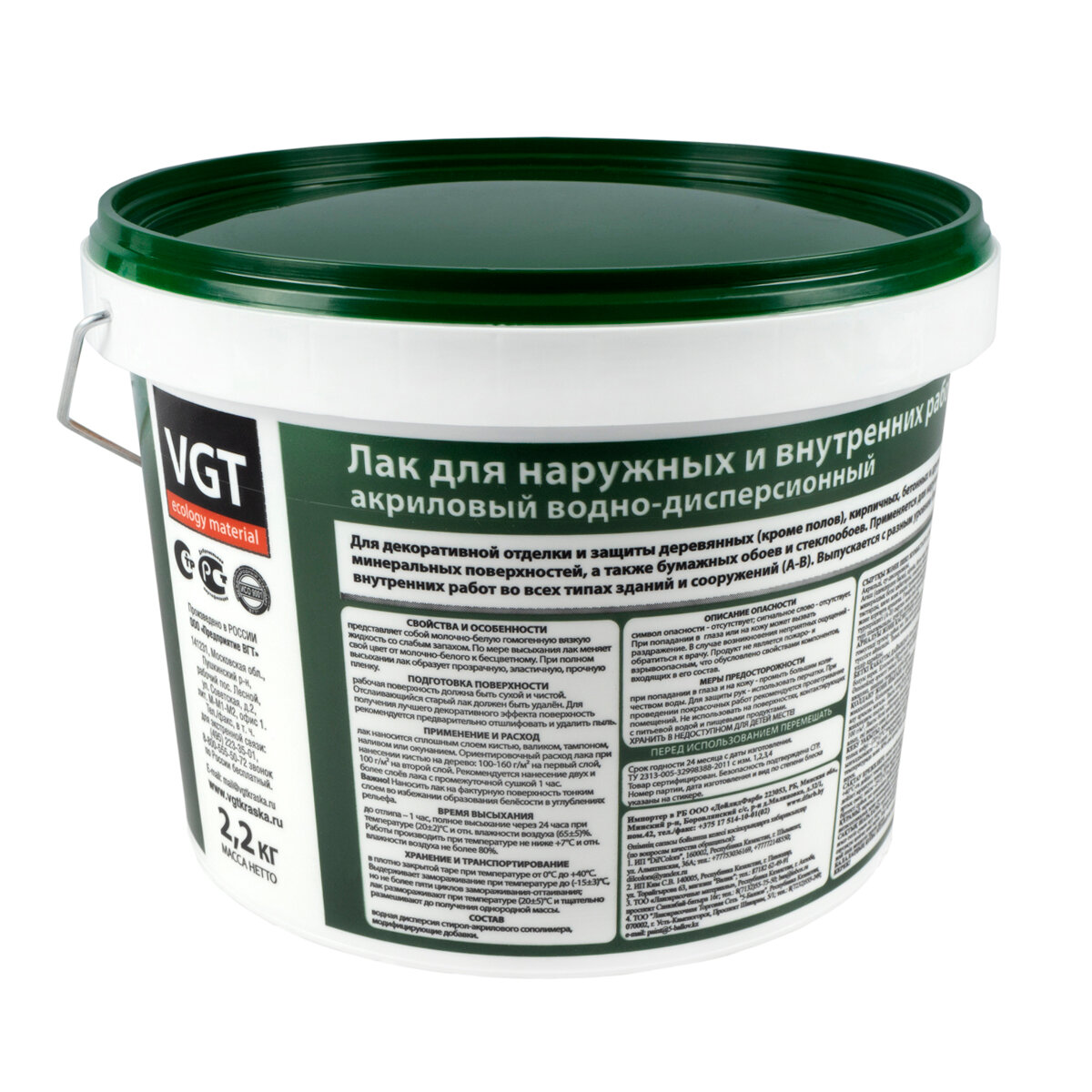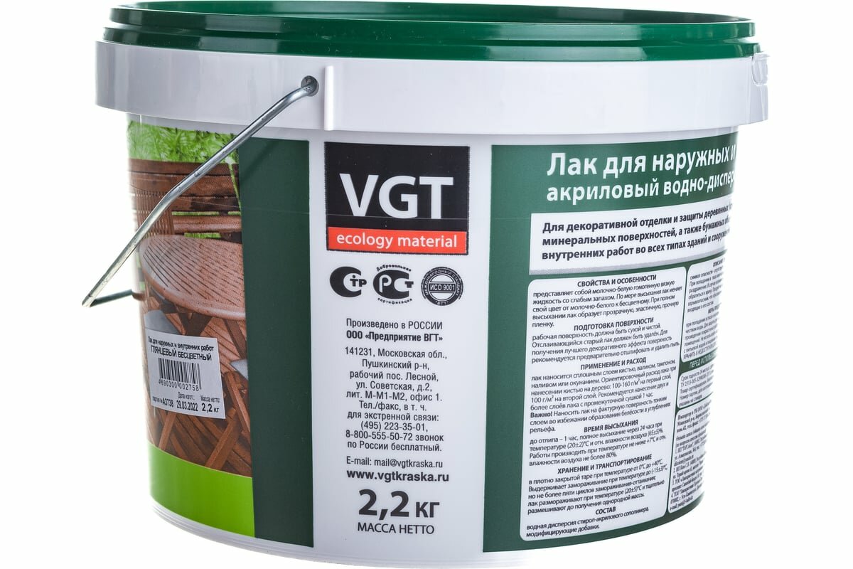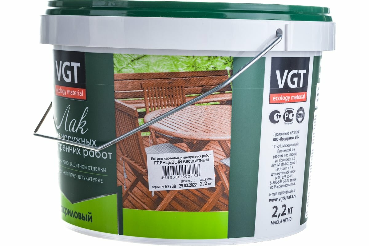 ВГТ лак акриловый для наружных и внутренних работ глянцевый (2,2кг) / VGT лак акриловый для наружных и внутренних работ по дереву кирпичу штукатурке г
