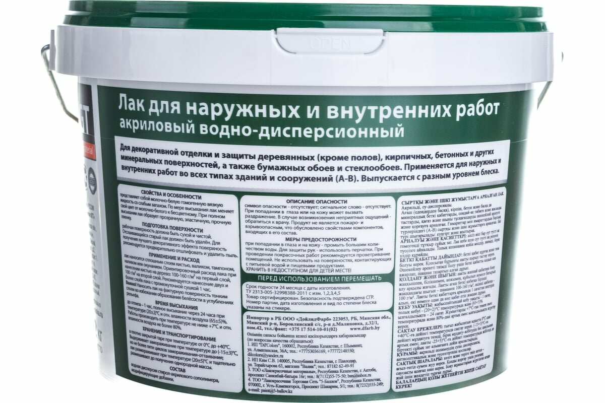 ВГТ лак акриловый для наружных и внутренних работ глянцевый (9кг) / VGT лак акриловый для наружных и внутренних работ по дереву кирпичу штукатурке гля