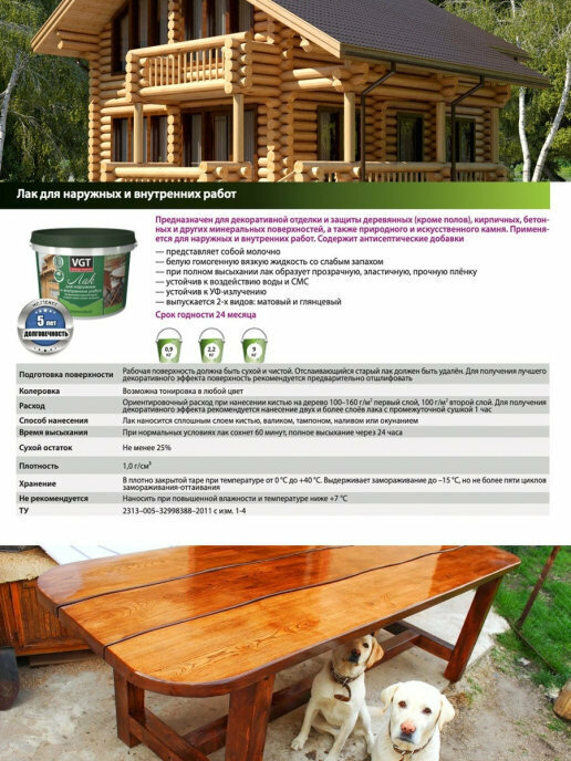 VGT Лак акриловый для наружных и внутренних работ по дереву, бетону, камню, глянцевый, 2,2 кг