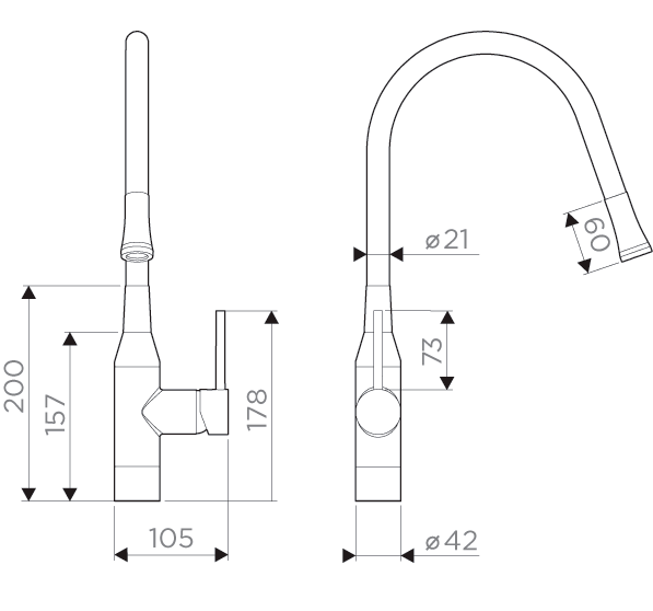 Смеситель для кухни OMOIKIRI Yatomi-BN-GR с гибким изливом/Нержавеющая сталь