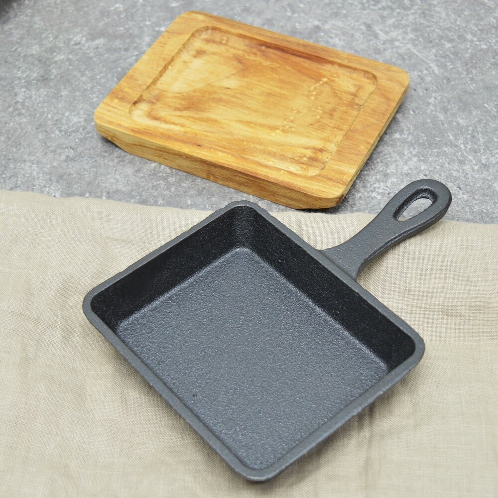 Сковорода 12,5*10,6см чугунная с деревянной подставкой МВ 26797 26797 .