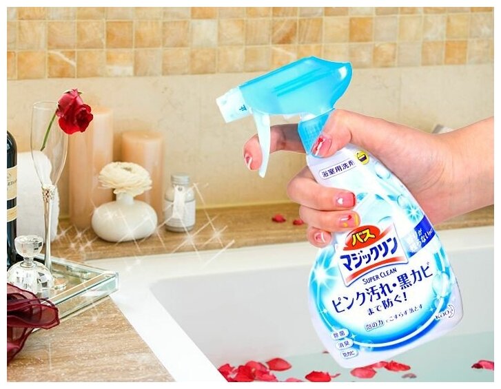 Kao Magiclean Super Clean Спрей-пенка для ванной комнаты с антибактериальным эффектом без запаха 380 мл