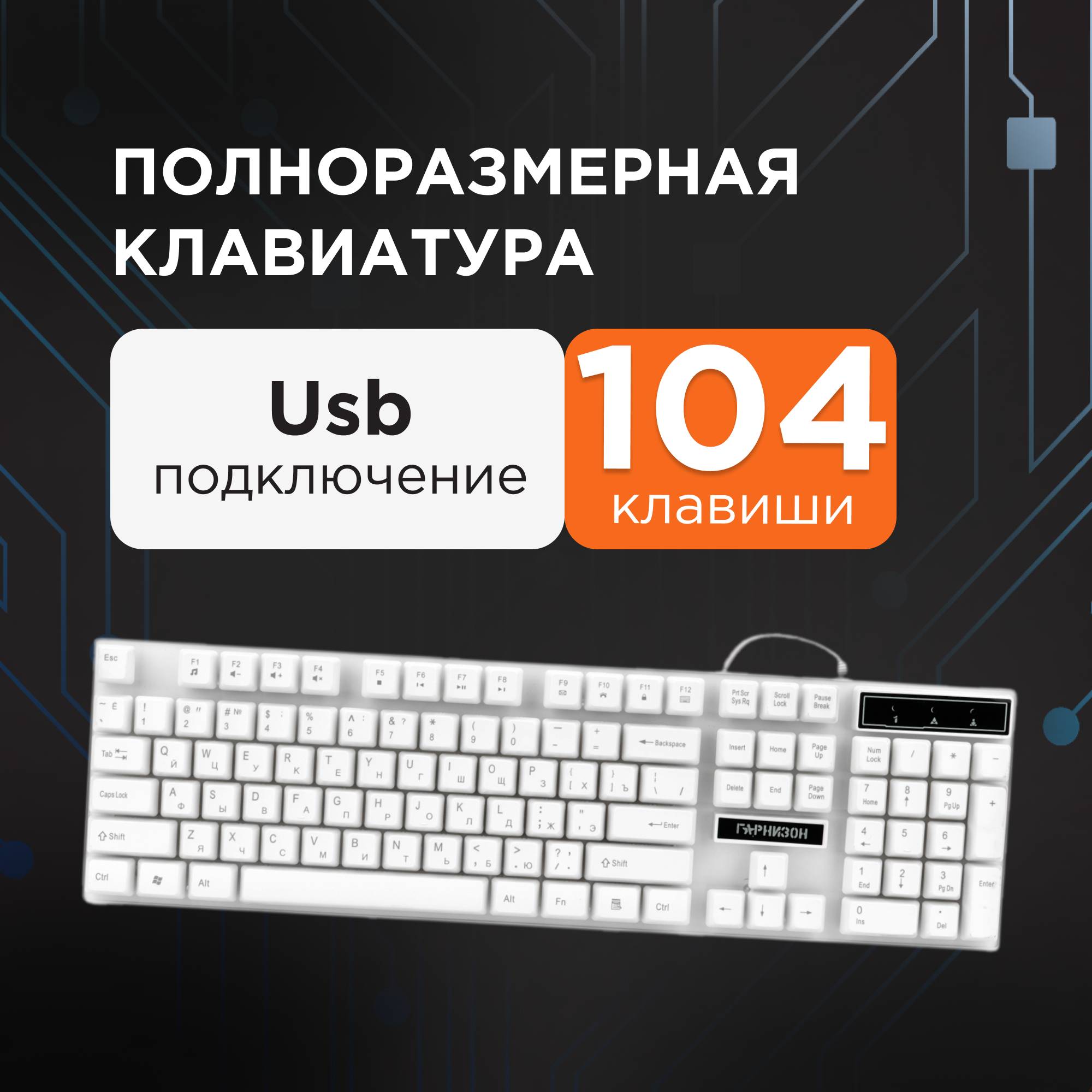Клавиатура Гарнизон GK-200, USB, белый, механизированные клавиши