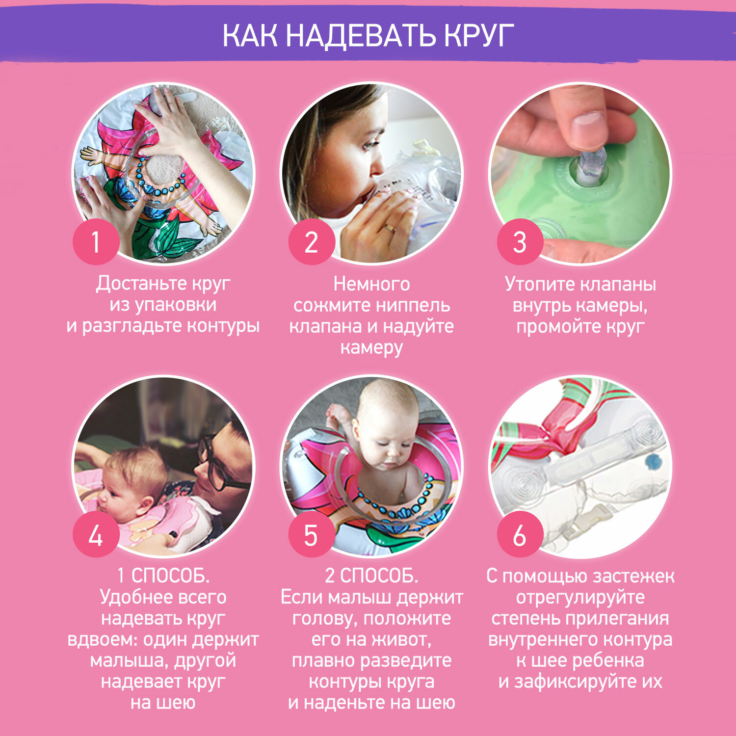 | Плюсы: | Очень удобный круг, особенно для купания грудничка |