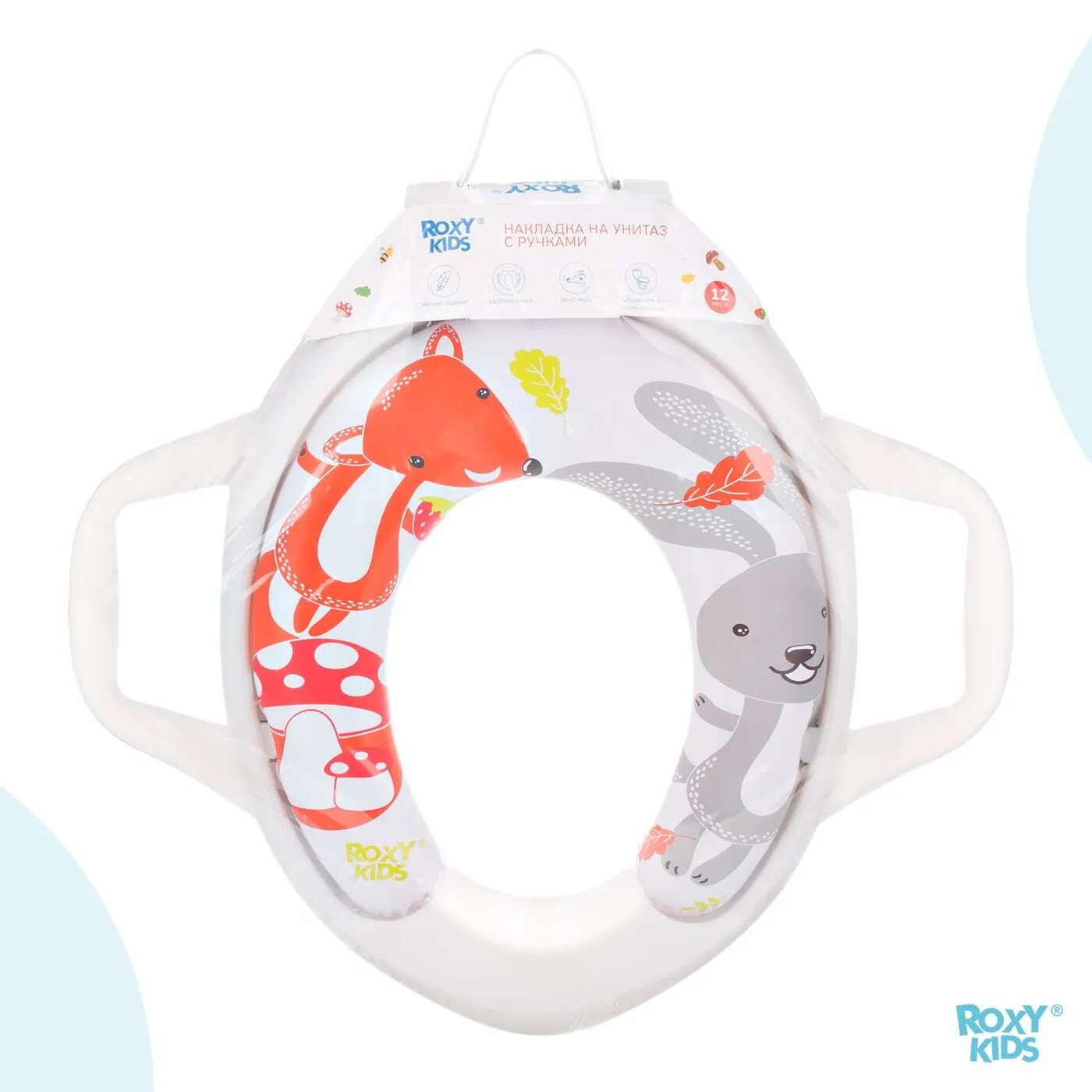 Накладка на унитаз с ручками от ROXY-KIDS. Звери. Мягкое сиденье, антискользящее покрытие.