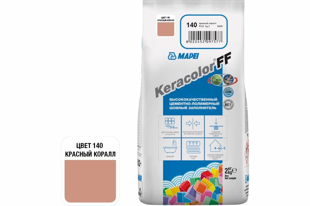MAPEI Затирка KERACOLOR FF № 140/2кг (Красный корал) 5QA014002A