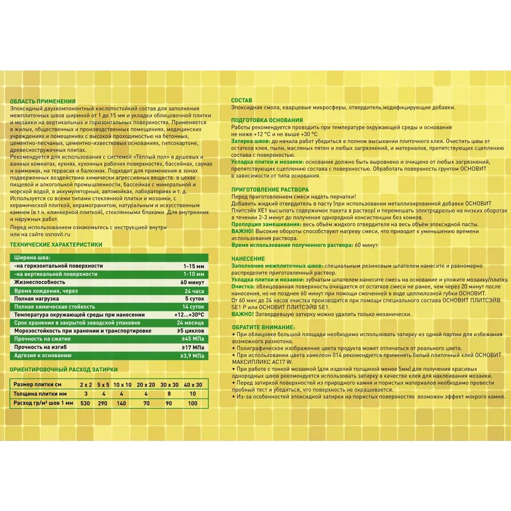 Затирка эпоксидная эластичная Основит Плитсэйв XE15 E №072, охра, 2 кг