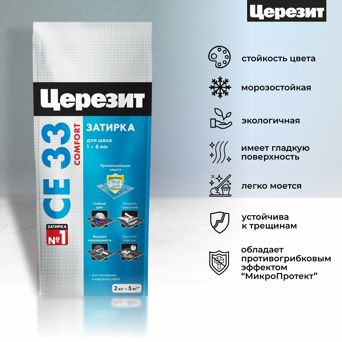 Церезит СЕ 33 затирка противогрибковая №41 натура (2кг) / CERESIT CE-33 Comfort затирка цементная для швов противогрибковая №41 натура (2кг)