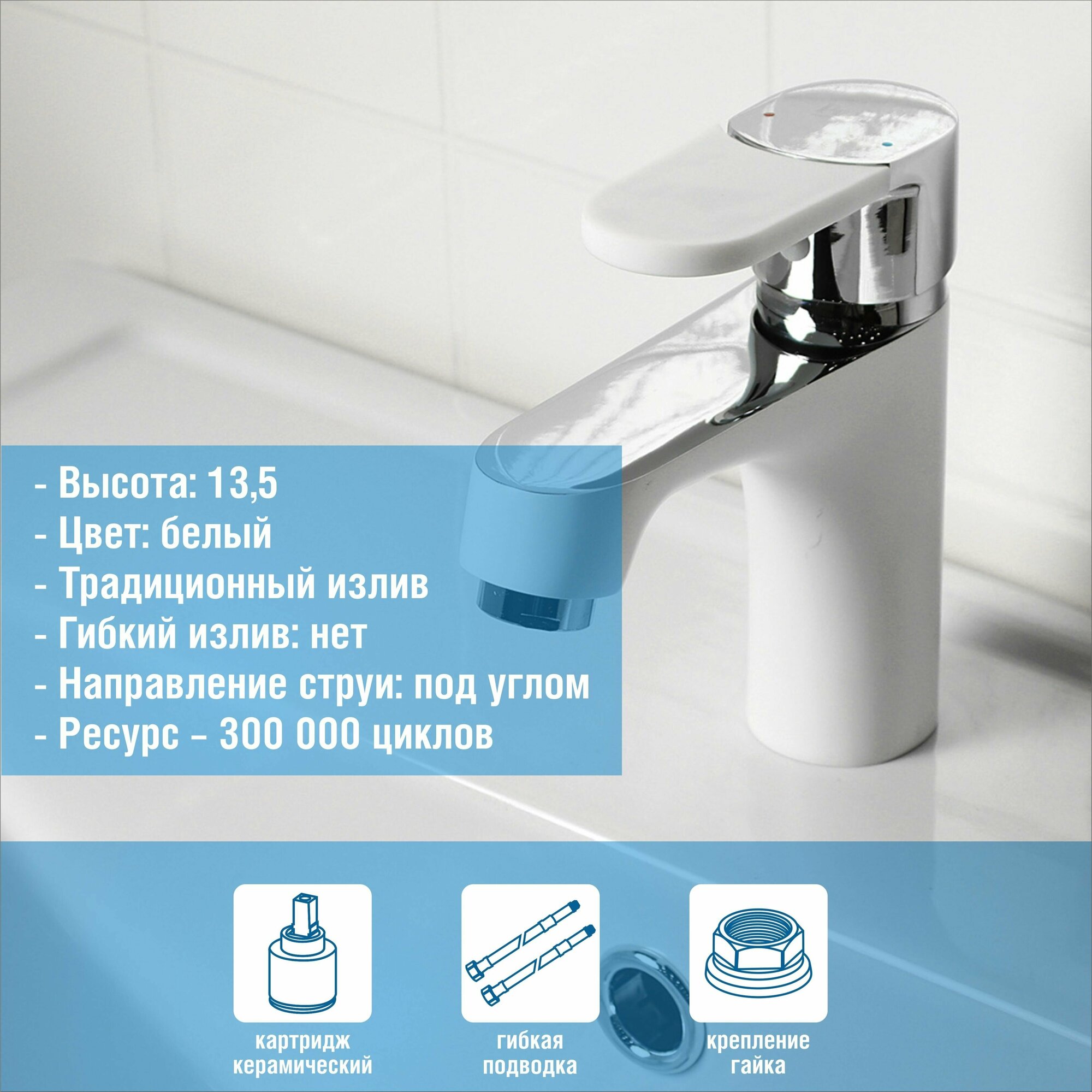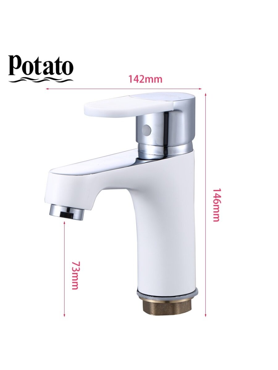 Смеситель для умывальника, керамический картридж 35мм, белый, Potato, арт P10223-7