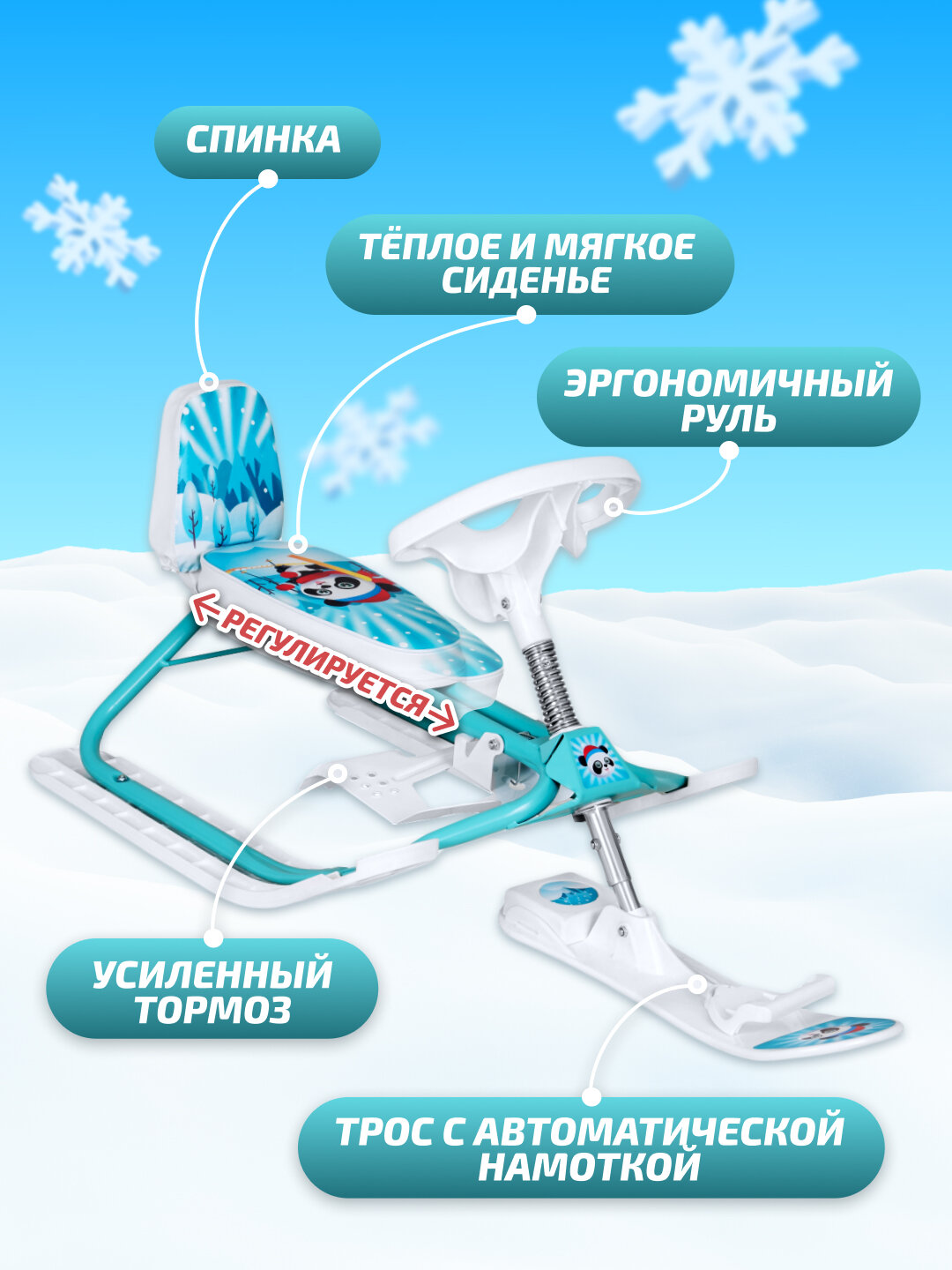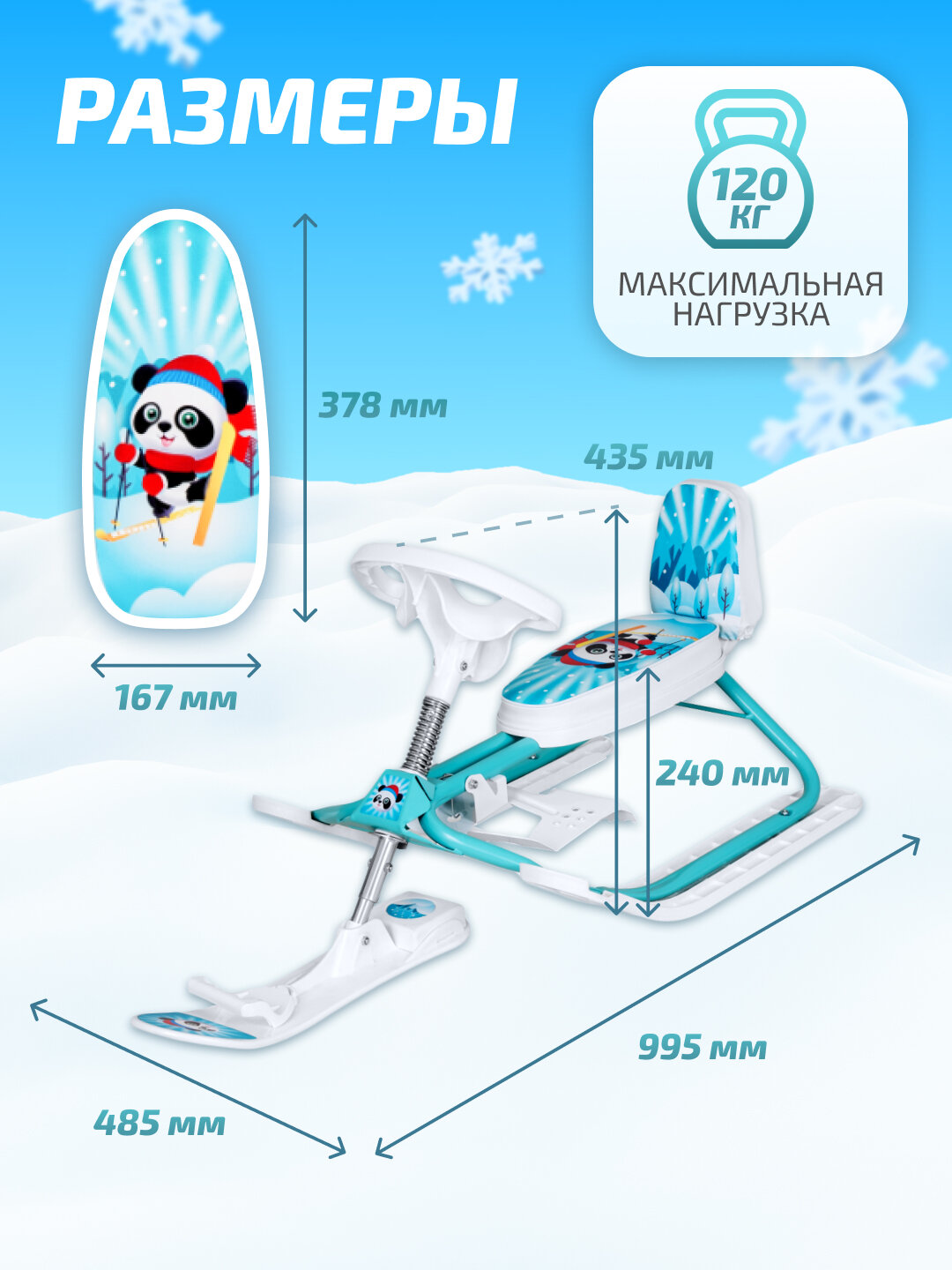 Снегокат Дэми детский со спинкой Панда СНК.10-02 для прогулок и катания с гор