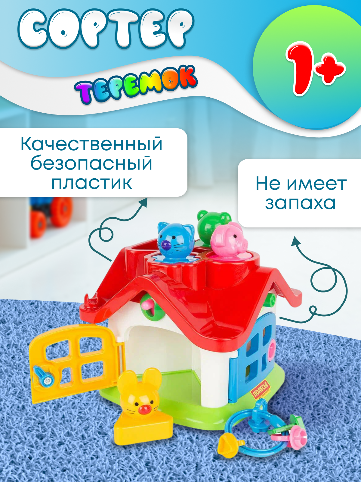 - функционал (толковый сортер! с тремя функциями - посади, провали, отопри) - дизайн (без острых углов) - прочность (дети используют как подставку в манеже. и мы спокойны, ничего не треснет) - отсутствие световых и звуковых эффектов |