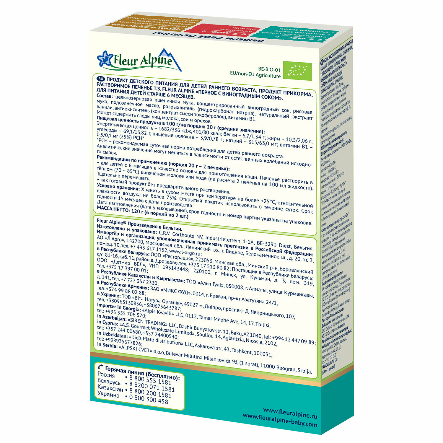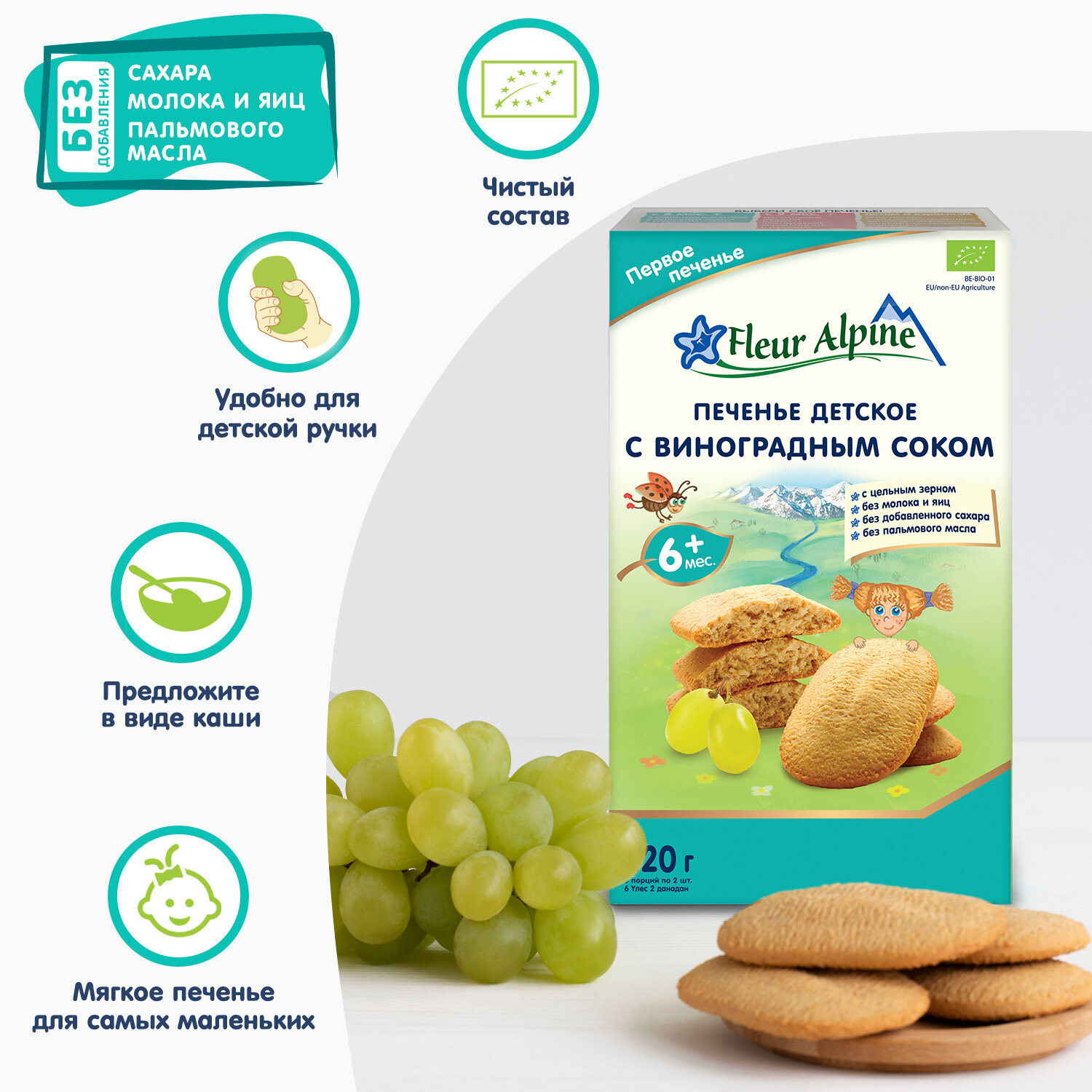 Купить Печенье детское Fleur Alpine С виноградным соком, с 6 месяцев, 120 г