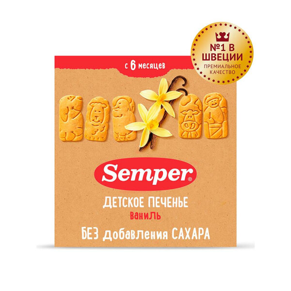 Печенье детское Semper с 6 месяцев, ванильное, без сахара, 125 г