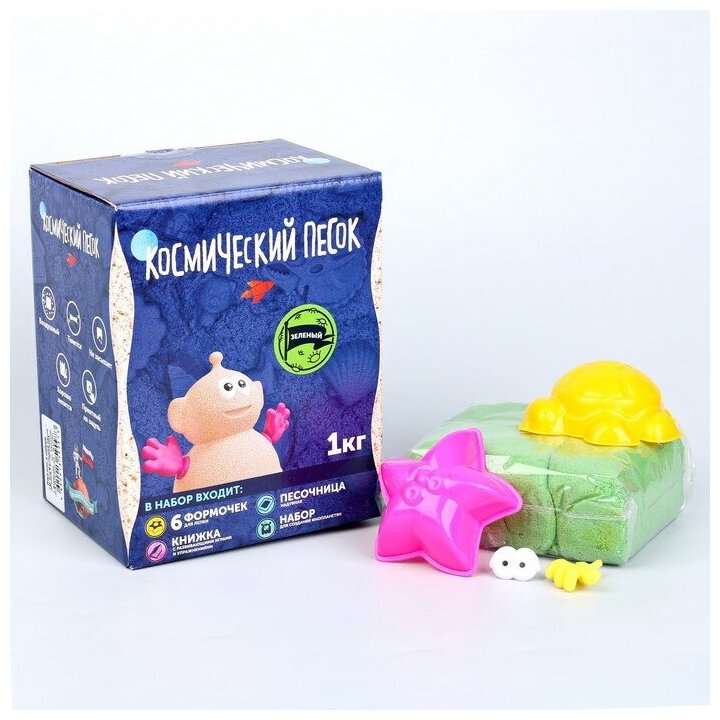 Купить Космический песок Песочница+Формочки Зеленый 1 кг(коробка набор) КП03З10Н 1987284
