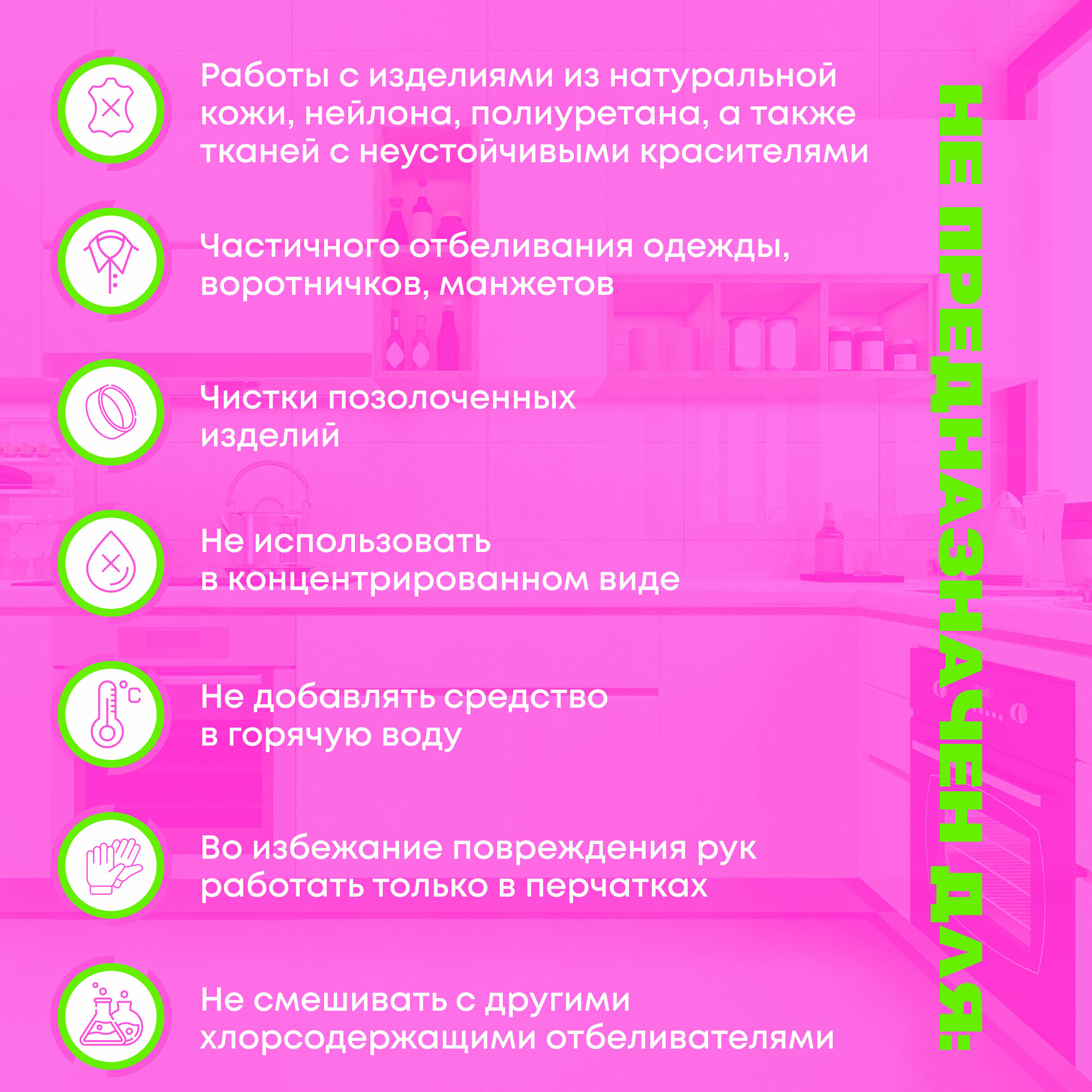 | Плюсы: | отбеливает поверхности на кухне. прекрасно очищает столешницу |