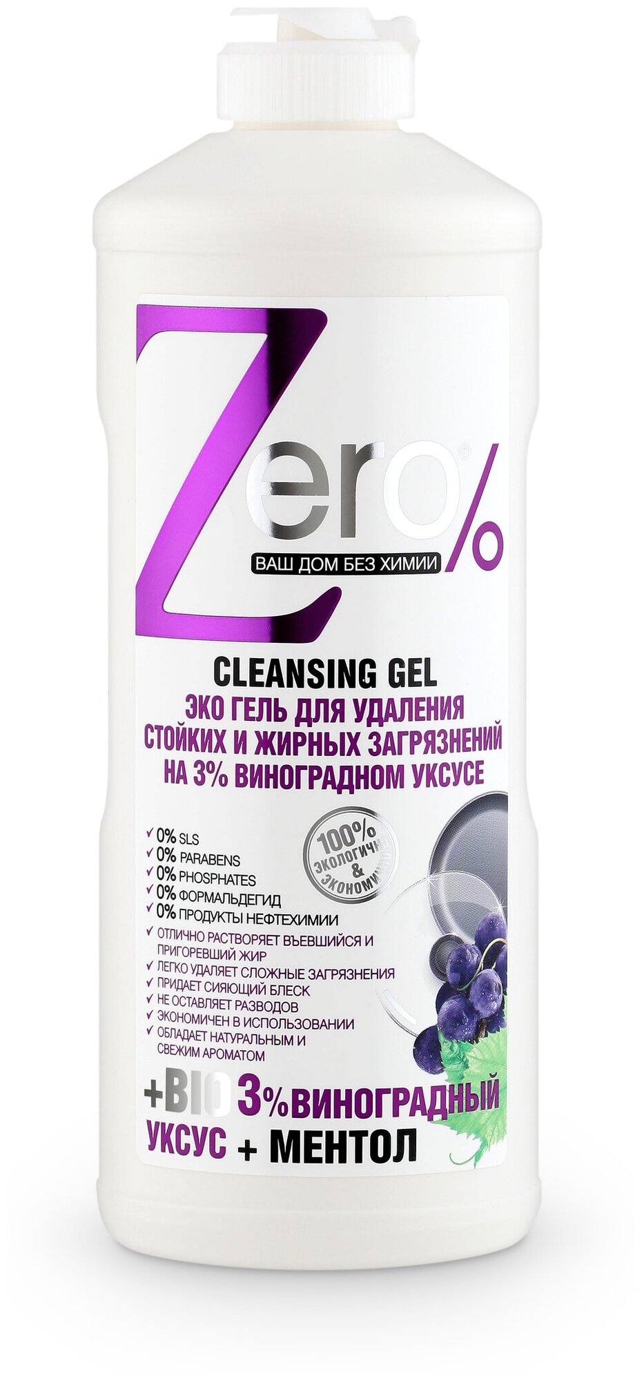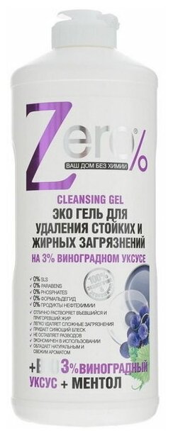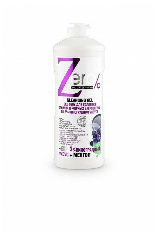 ZERO Эко гель для удаления стойких и жирных загрязнений на 3% виноградном уксусе + ментол 500 мл