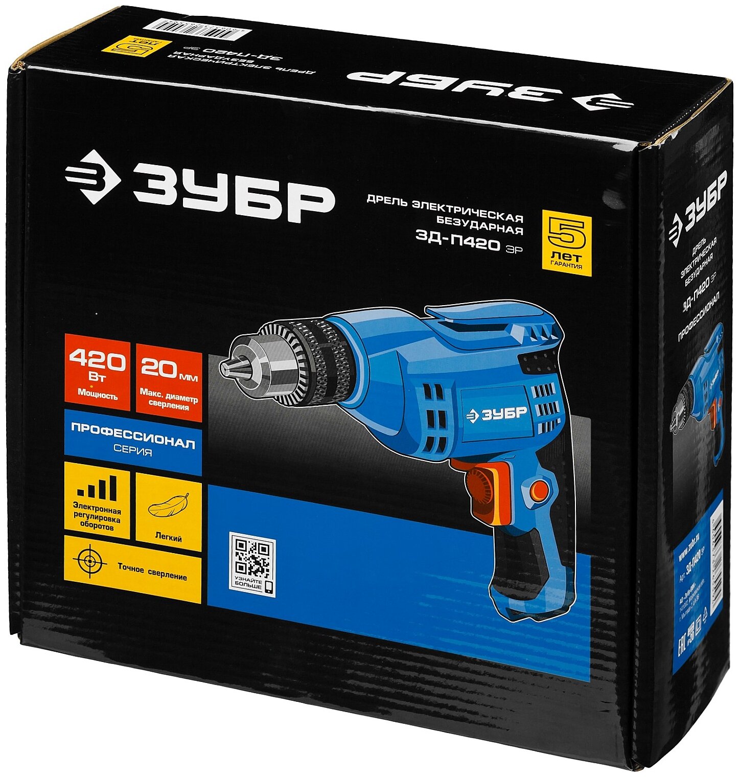 Дрель ударная реверсивная, (электронная регулировка скорости), ключевой патрон, 10мм, 420 Вт ЗУБР профессионал/// ЗД-П420 ЭР