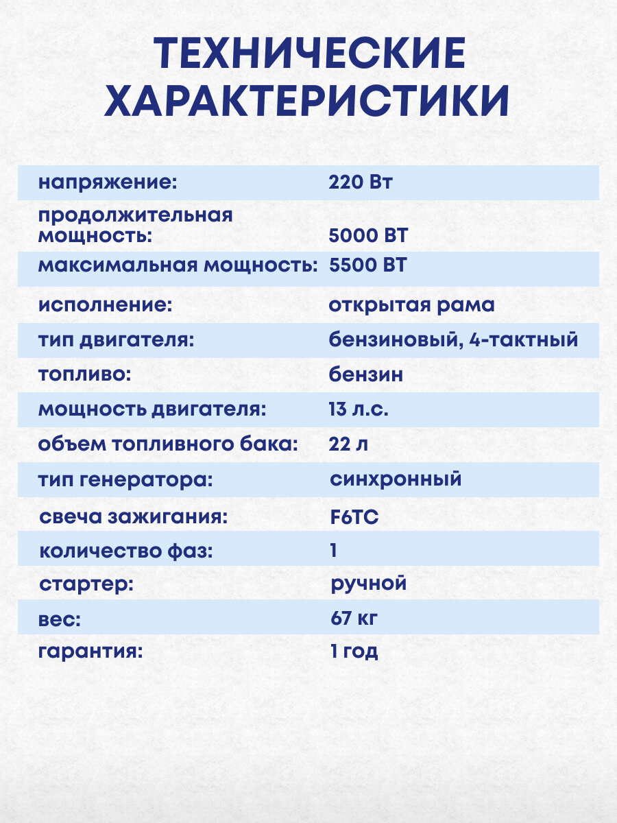 | Номинальная мощность | 5000 Вт |