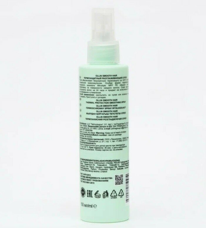 Купить OLLIN Professional Smooth Hair Термозащитный разглаживающий спрей, 150 мл, OLLIN