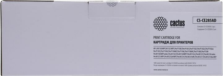 Квант продажи 1 ед. Картридж лазерный CACTUS (CS-CE285AD) для HP LaserJet P1102/M1212, комплект 2 шт., ресурс 2×1600 страниц