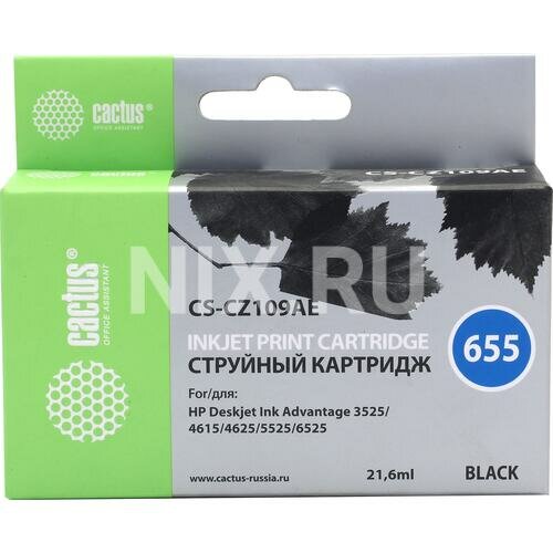 Купить Картридж струйный Cactus CS-CZ109AE №655 черный (21.6мл) для HP DJ IA 3525/5525/4525