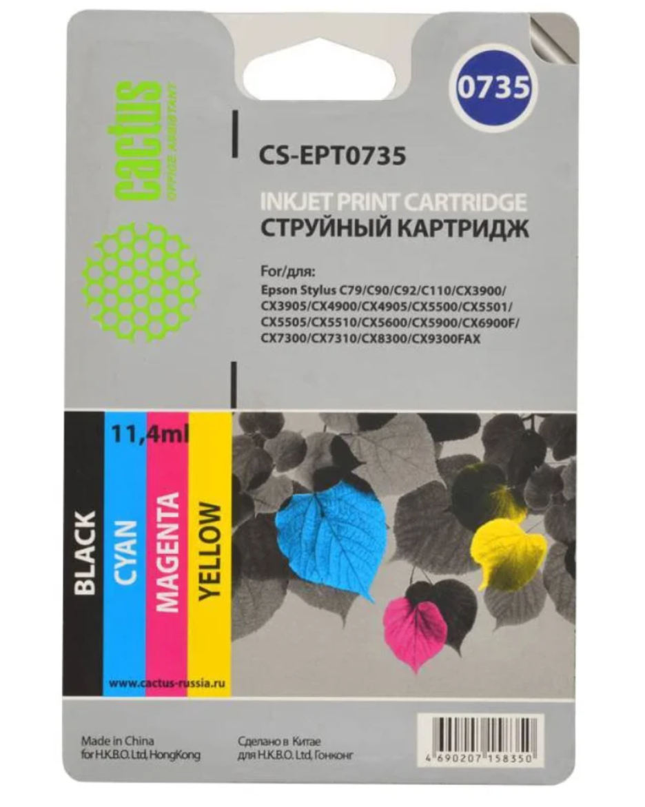 Картридж Cactus струйный T0735 черный/голубой/пурпурный/желтый набор (45.6мл) для Epson Stylus С79/C110/СХ3900/CX4900