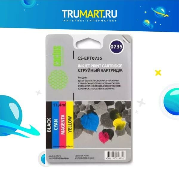 СохранитьКартридж струйный Cactus CS-EPT0735 T0735 черный/голубой/пурпурный/желтый набор (45.6мл) для Epson Stylus С79/C110/СХ3900/CX4900 интересное: