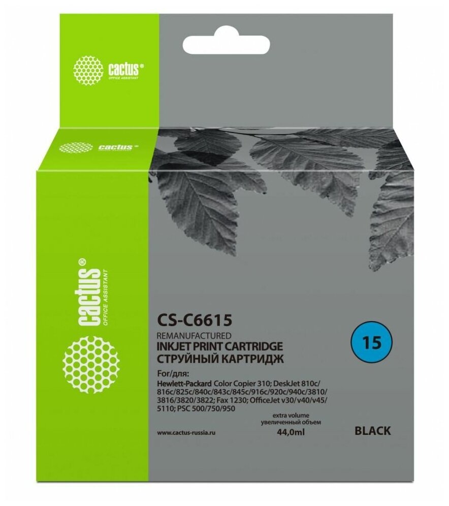 Картридж струйный Cactus CS-C6615 №15 черный (44мл) для HP CC 310/DJ 810c/816c/825c/840c/843c/845c/916c/920c/940c/3810/3816/3820/3822/Fax 1230/DJ v30/v40/v45/ 5110/PSC 500/750/950