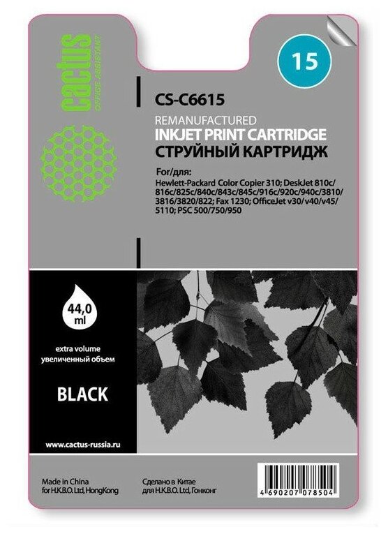 СохранитьCartridge ink Cactus CS-C6615 №15 black (44ml) for HP CC 310/DJ 810c/816c/825c/840c/843c/845c/916c/9 интересное: