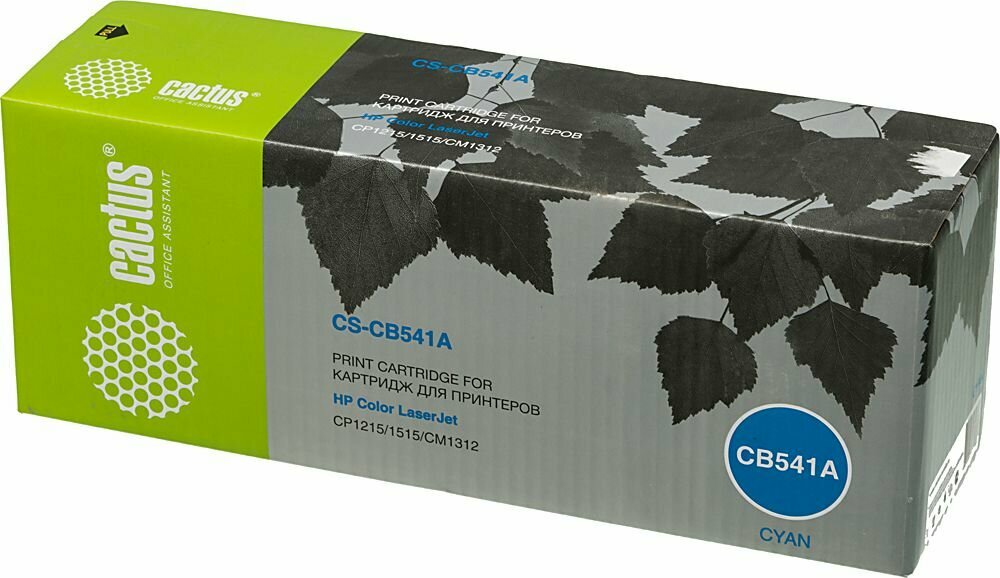 Картридж Cactus CS-CB541A CB541A голубой, для HP CLJ CP1215/1515/CM1312, ресурс до 1400 страниц