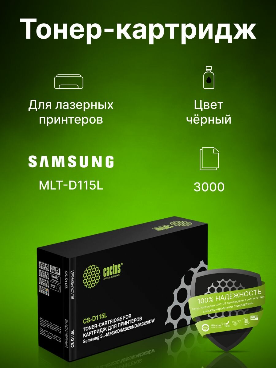 Картридж лазерный CACTUS (CS-D115L) для SAMSUNG SL-M2620D/M2820ND/M2820DW, ресурс 3000 стр.