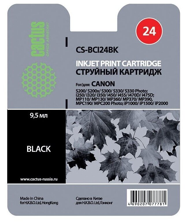 Cartridge ink Cactus CS-BCI24BK black (9.2ml) for Canon S200/S200x/S300/S330/S330/i250/i320/i350/i45 интересное: