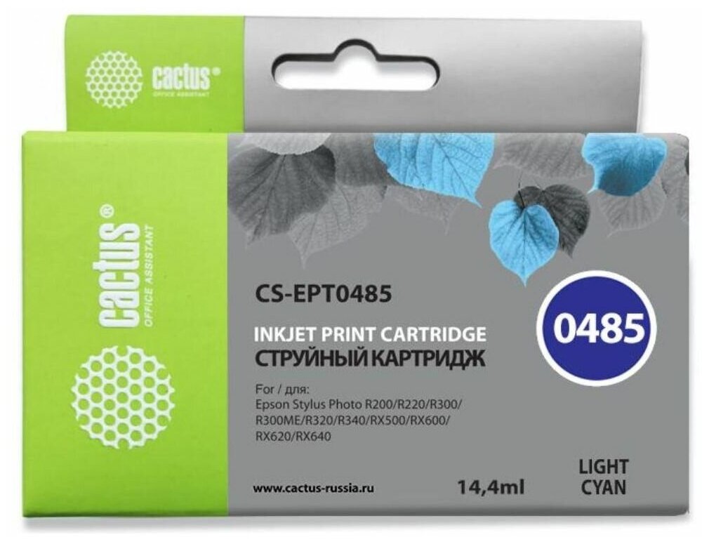 Картридж Cactus CS-EPT0485 светло-голубой (14.4мл) для Epson Stylus Photo R200/R210/R220/R300/R300M/R310/R320/R340/RX300/RX500/RX510/RX600/RX620/RX630/RX640/PM A870/PM D770, струйный
