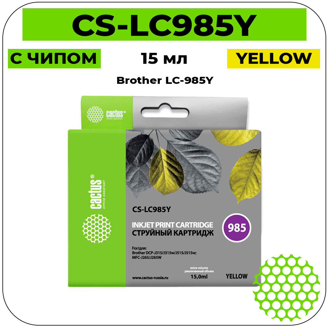 Купить Картридж струйный Cactus CS-LC985Y желтый (15мл) для Brother DCPJ315W/DCPJ515W/MFCJ265W
