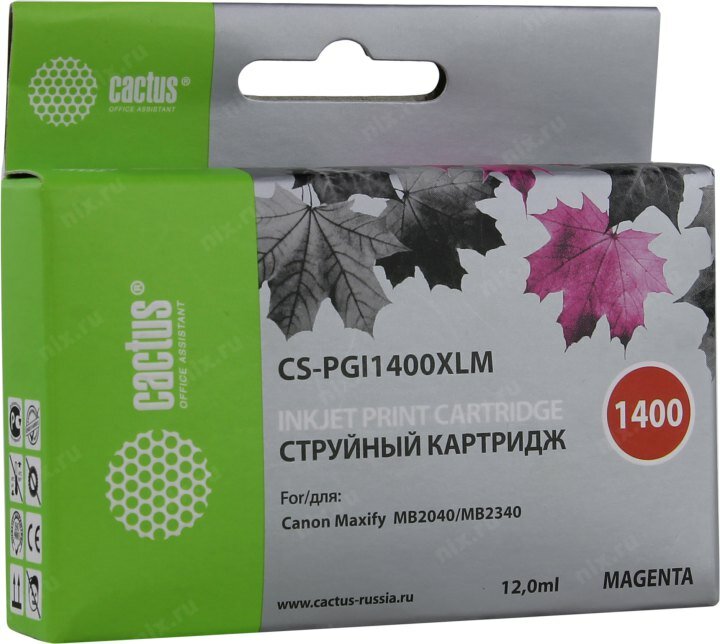 Купить Картридж струйный Cactus CS-PGI1400XLM пурпурный (12мл) для Canon MB2050/MB2350/MB2040/MB2340