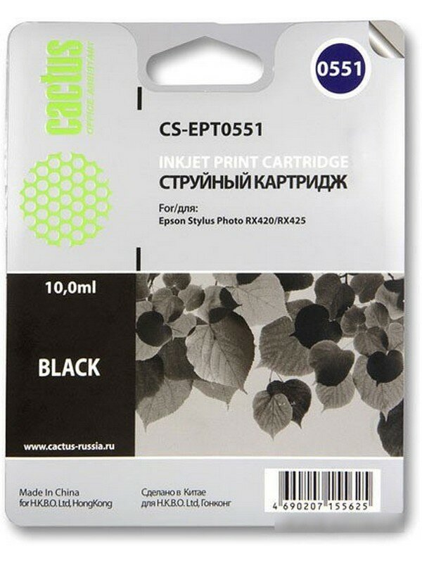 Картридж Cactus CS-EPT0551 T0551 черный (10мл) для принтера Epson Stylus Photo R240/R245/RX420/RX425/RX430/RX520, струйный