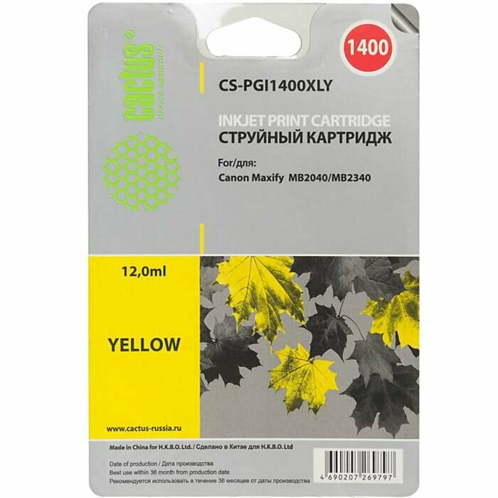 Картридж Cactus CS-PGI-1400XLY Yellow для MB2050/MB2350/MB2040/MB2340 11.5ml CS-PGI1400XLY