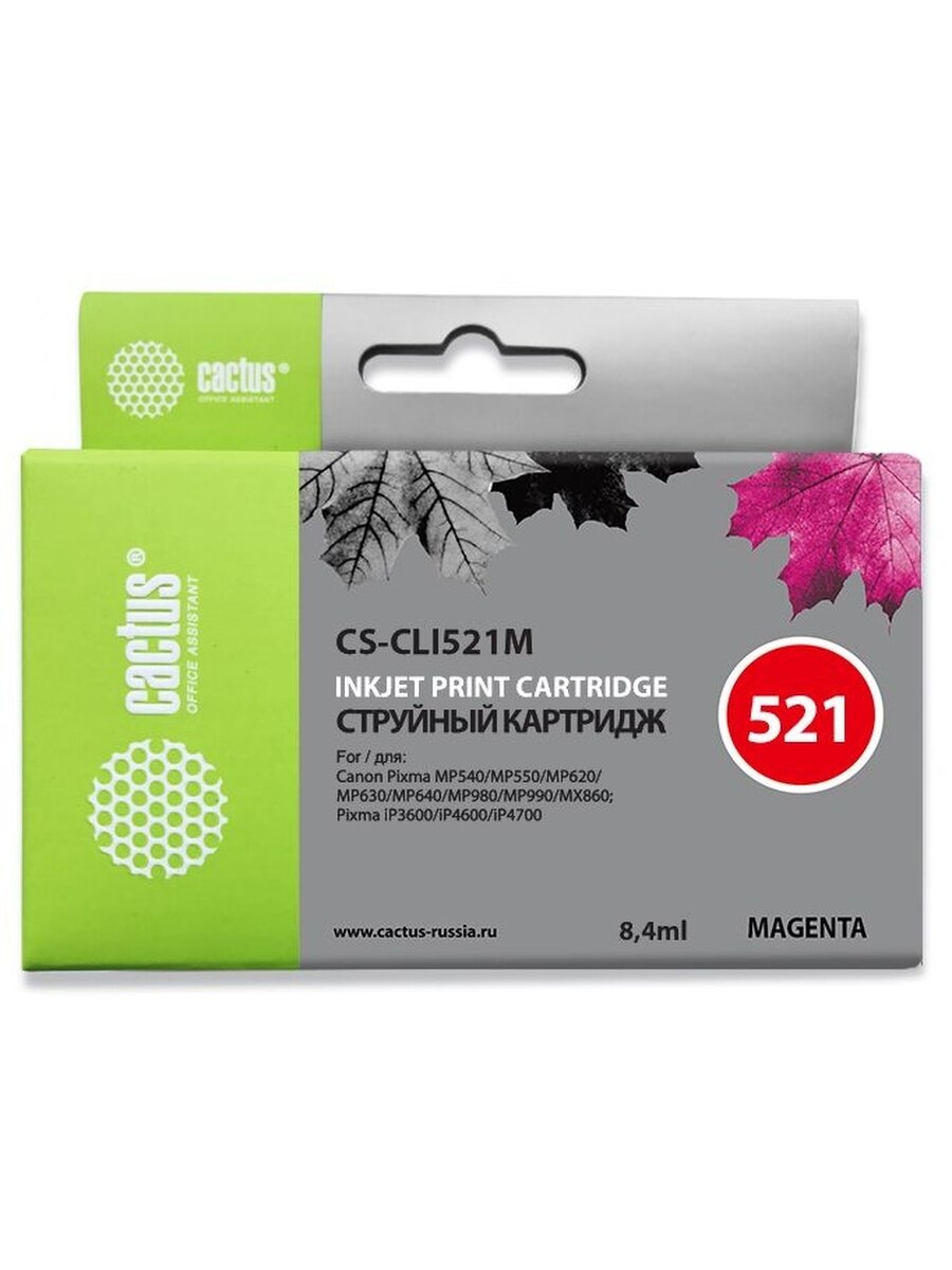 Купить Картридж струйный Cactus CS-CLI521M пурпурный (8.4мл) для Canon Pixma MP540/MP550/MP620/MP630/MP640/MP980/MP990/MX860/iP3600/iP4600/iP4700