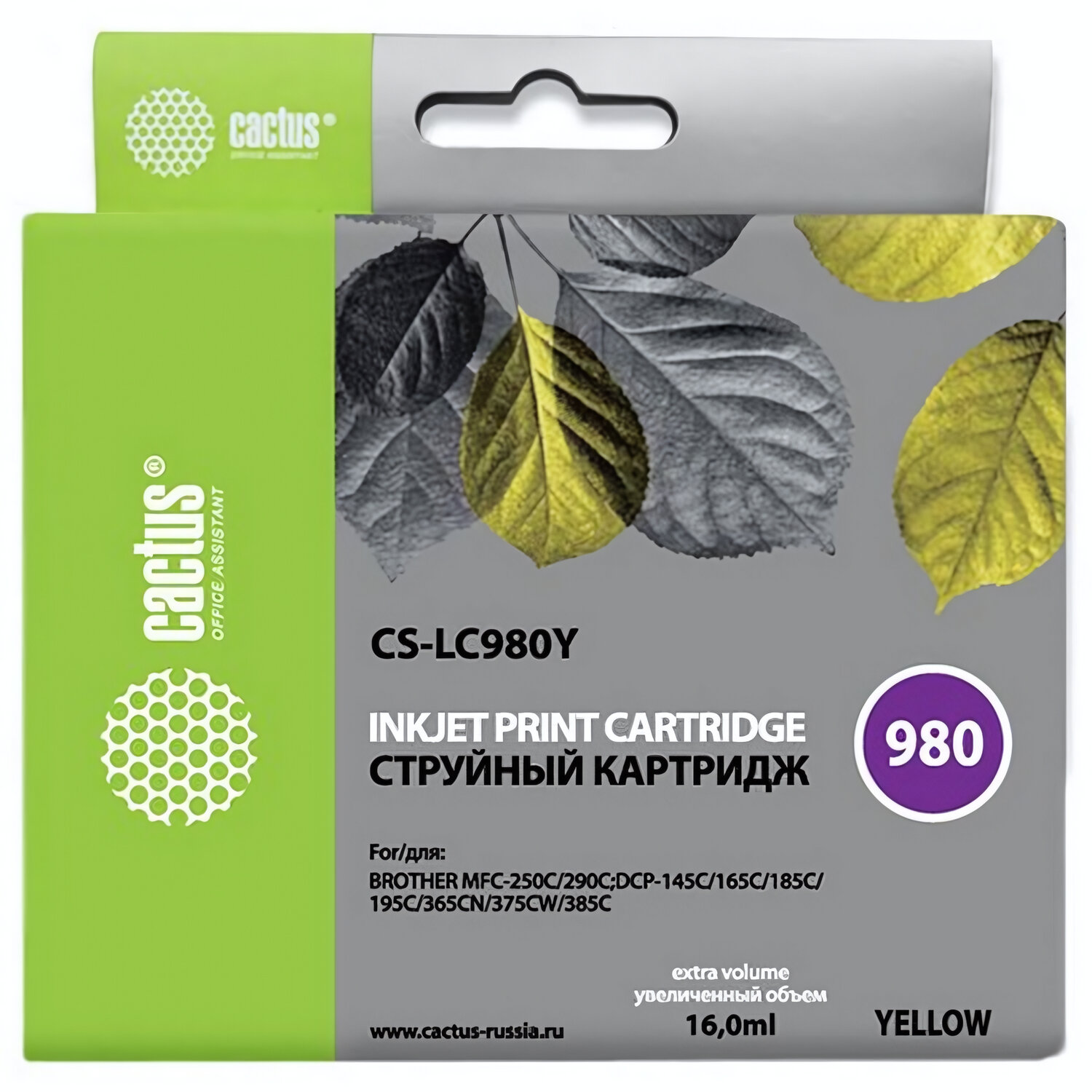 Купить Картридж струйный Cactus CS-LC980Y желтый (16мл) для Brother DCP-145C/165C/MFC-250C/290C