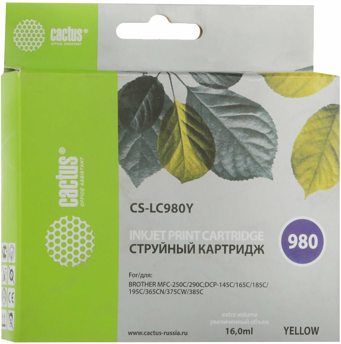 Картридж струйный Cactus CS-LC980Y желтый для Brother DCP-145C/165C MFC-250C/290C (16ml)