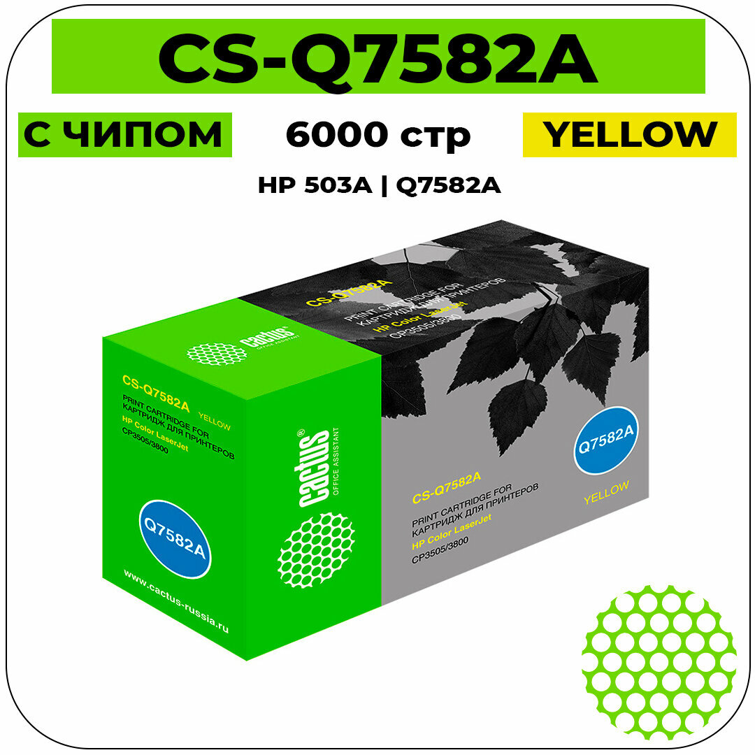 Картридж Cactus CS-Q7582A лазерный картридж (HP 503A - Q7582A) 6000 стр, желтый