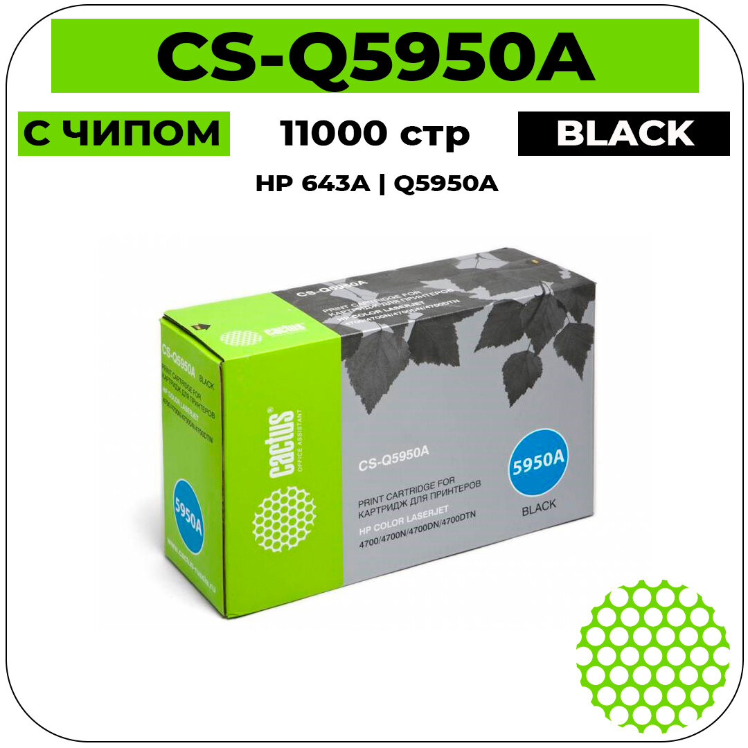 Картридж Cactus для q5950a Color LaserJet 4700, черный,11000стр (cs-q5950a) .