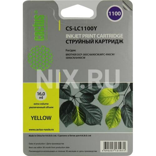 Картридж Cactus Cs-lc1100y 16ML Yellow DCP-385c/6690cw/MFC-990/5890/5895/6490 .