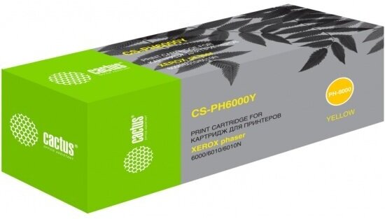 Картридж лазерный CACTUS (CS-PH6000Y) для XEROX Phaser 6000/6010N, желтый, ресурс 1000 стр. Комплект - 1 шт .