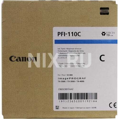 Тонер-картридж Canon PFI-110C Cyan/Голубой 2365C001