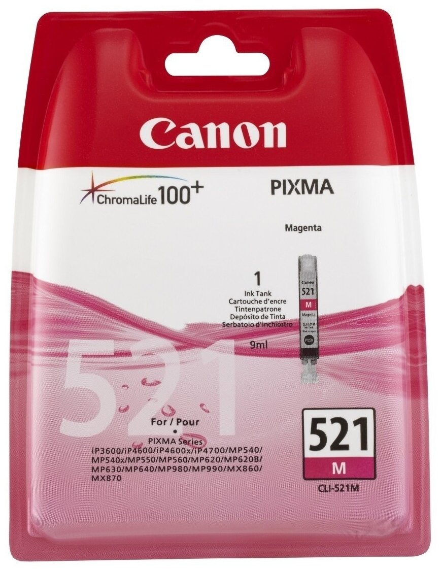 Картридж CANON CLI-521 Картридж CANON CLI-521 Magenta для PIXMA iP3600, iP4600, iP4700, MP540, MP550, MP560, MP620, MP630, MP640, MP980, MP990, MX860 2935B004