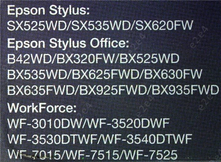 | Модель совместимого принтера | BX320FW BX320 / BX625FWD BX625 / BX635FWD BX635 / SX525WD SX525 / SX535WD SX535; WorkForce WF-3520DWF WF-3520 / Stylus B42WD B42 / WF-7015 / WF-7515 / WF-7525 |