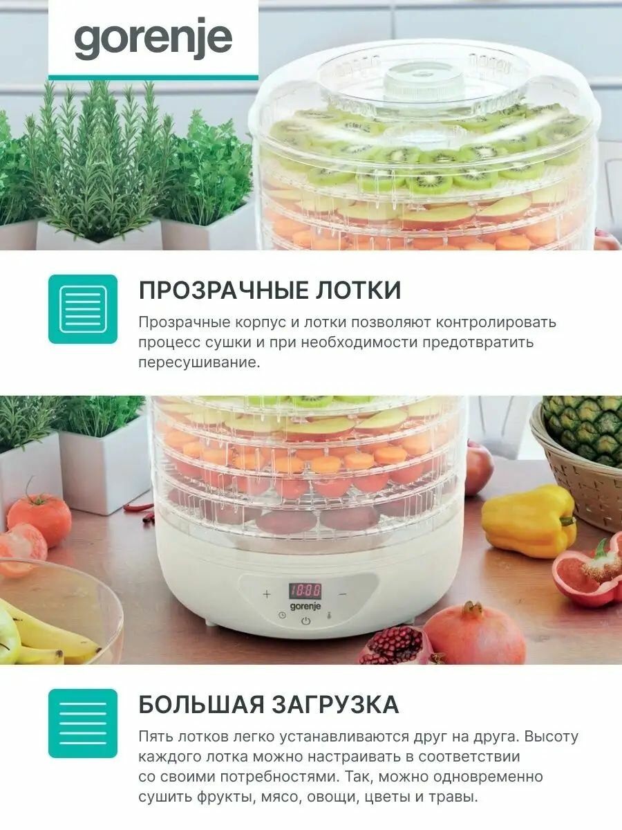 Сушилка для овощей и фруктов GORENJE FDK24DW, белый, 5 поддонов
