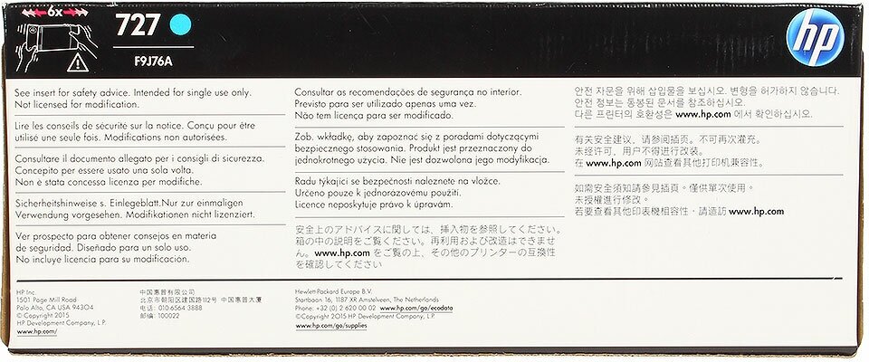 Картридж HP F9J76A №727 с голубыми чернилами для принтеров Designjet, 300 мл