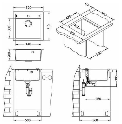 Мойка ALVEUS FORMIC 20 GRANITAL+ STEEL-G04M 520x510x200;1x с сифоном 1127749,
